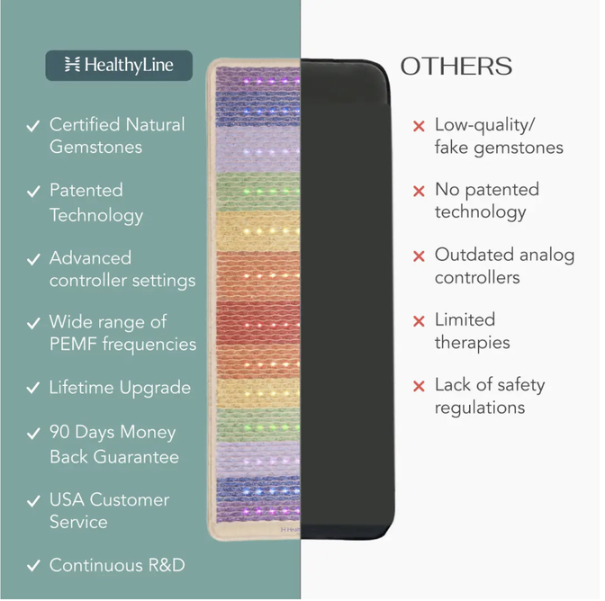 Since 2013, HealthyLine has been a pioneer in Far Infrared Therapy and PEMF wellness technology, helping individuals, spas, and wellness centers integrate cutting-edge therapies into their self-care routines. HealthyLine was founded with a clear mission: to blend the natural healing power of gemstones with the latest advancements in technology.