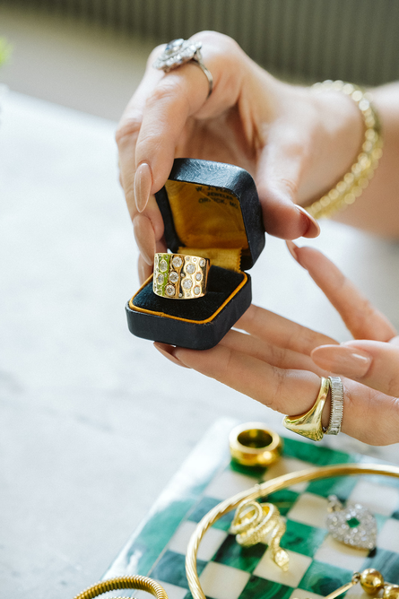 Over nearly 20 years in the corporate world, my passion for old beautiful objects grew. When I started buying fine jewelry for myself with my own money, I realized its power to express personal style and mark milestones. My collection evolved into mixing styles, eras, and metals – making my days more joyful and turning my hard work into something lasting and tangible to hold my own stories. My jewelry collection evolves so it's never "done" and that's so much fun!