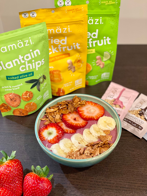 Bold flavors, bold mission. Amazi Foods is a mindful food company here to help you Snack on Purpose with their 100% made-in-Uganda tropical fruit snacks. Started by female-founder, Renee Dunn, in 2016, Amazi partners directly with farmers and small businesses in Uganda to make their unique, vegan, nutrient-dense Jackfruit Chews - sticky, chewy, sweet bites packed with fiber - and Plantain Chips - dried never fried, hearty, grease-free crunch. Each comes in 3 delectable flavors that highlight these carefully sourced fruits, and are simply made with fruit and spices. No additives or preservatives, added sugars, or hydrogenated oils.