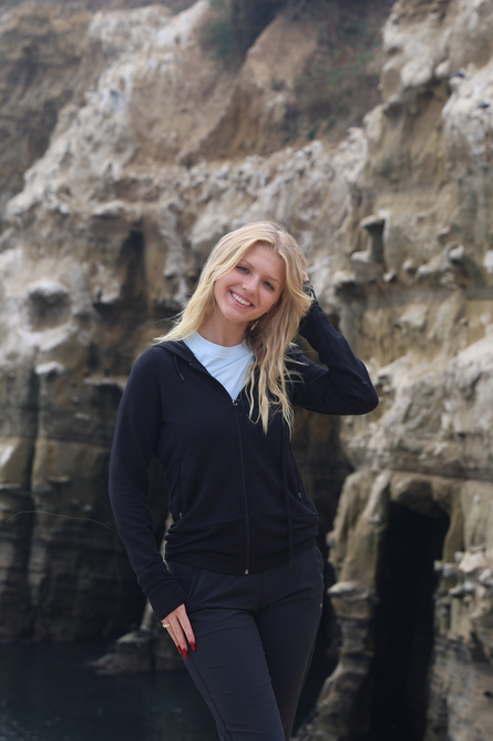 She is particularly passionate about building authentic relationships with athletes, creators, and media to grow brand equity and long-term awareness. Emily’s go-to piece is the Blacks Beach Hoodie in Dutch Canal, a reflection of the brand’s commitment to comfort, refinement, and everyday performance.