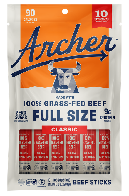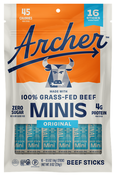 At Archer, we make no-brainer, no-compromise, deliciously satisfying meat snacks for anyone and any moment. Our jerky, sticks, and sausages are made from real ingredients like 100% grass-fed beef and all-natural turkey, seasoned with real herbs, spices, and high-quality marinades. Perfect for kids, these bite-sized snacks are free of sugar, artificial flavors, preservatives, MSG, and nitrates/nitrites.
