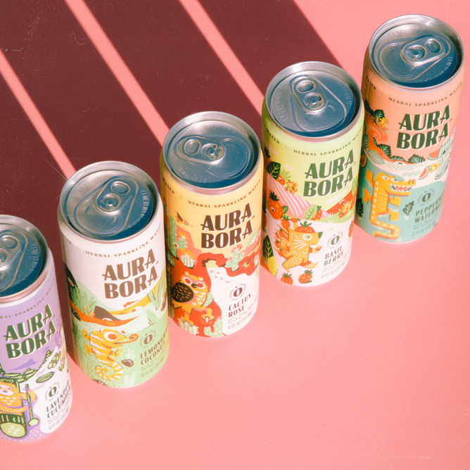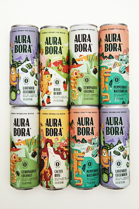And so Aura Bora was born. They created five delicious varieties using wild, plant-based concoctions. It's a whimsical, sugar-free, calorie-free drink with playful packaging and a partnership with 1% for the Planet.