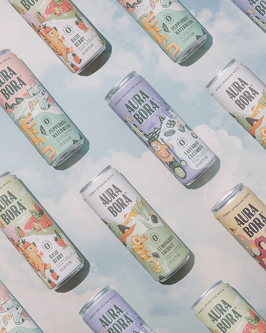 Aura Bora is a sparkling water made from herbs, fruits, and flowers for earthly tastes and heavenly feelings. Aura Bora uses real herbal extracts, vivid flavors, and floral aromas for a a flavor profile unlike any other. Using high-quality, plant-based ingredients and real herbal extracts in every can makes for a clean label and a remarkably light, refreshing, and vibrant taste. Every colorful variety is sugar-free, calorie-free, non-GMO, Whole30 approved, and donates a portion of sales to 1% for the Planet.