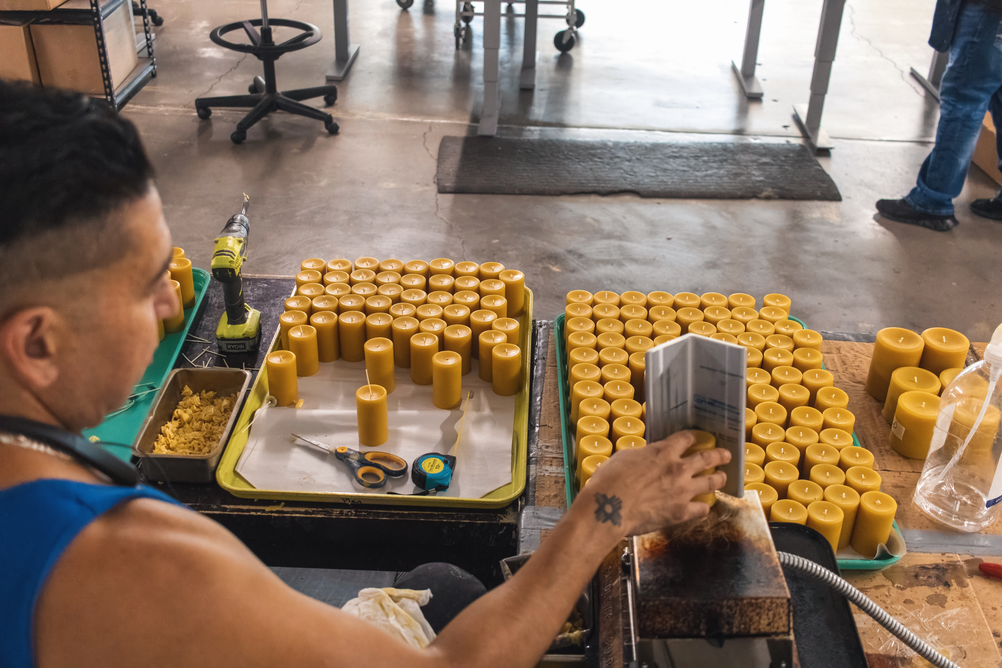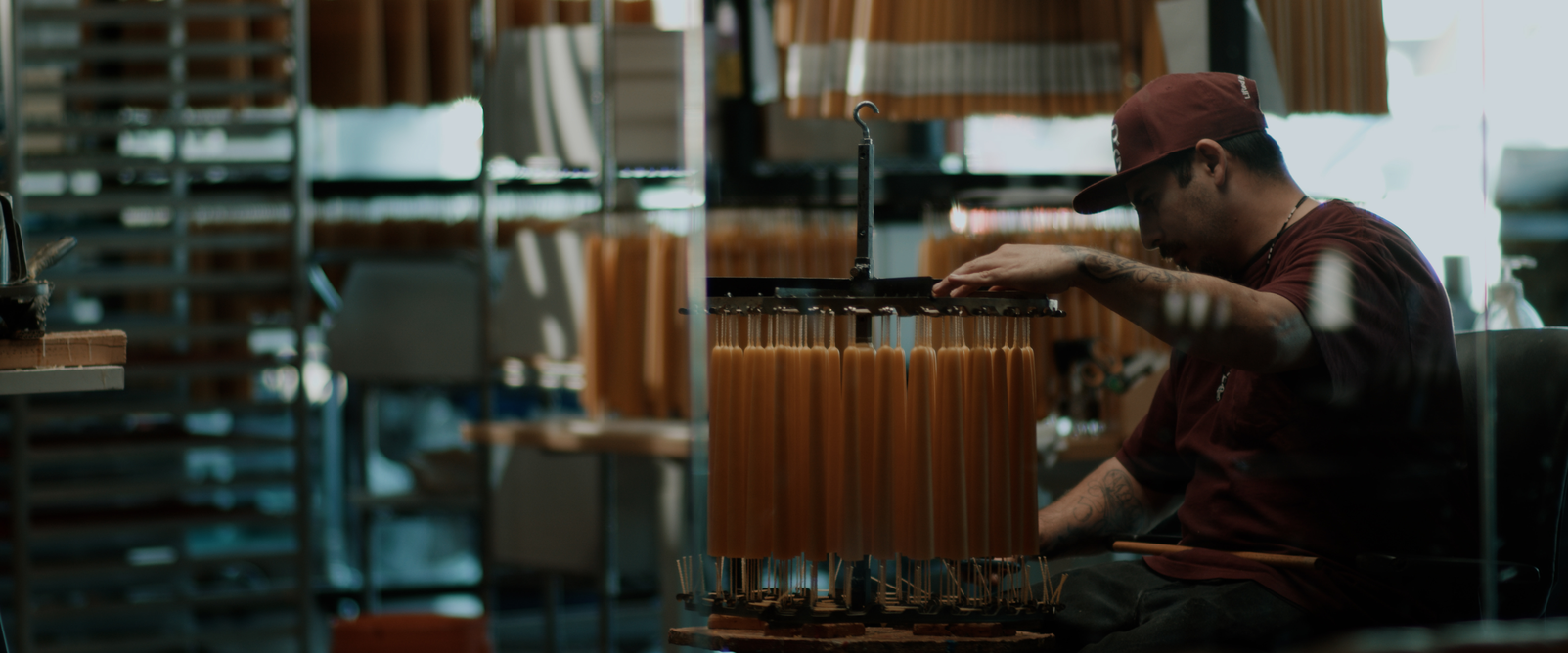 Our journey begins with sourcing only the finest of this beeswax, then lightly filtering it to remove particulates while leaving the sweet scent and vibrant color intact. Then, we painstakingly test burn every batch and carefully choose the right wick to ensure a perfect burn.