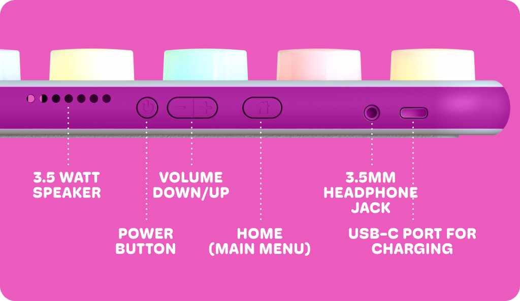 Use the parental app or select your activity on the Boppo tablet - press once to hear the activity, and press again to play. Listen along to our music player (complete with DJ mode), podcasts, or audiobooks, or explore our activities, including educational ones (teaching kids their colors, practicing counting), and many different kinds of games. Games include classics like Bop-a-Mole, Ping Pong, and new games designed just for Boppo. Activities in the library are free and more are on the way.