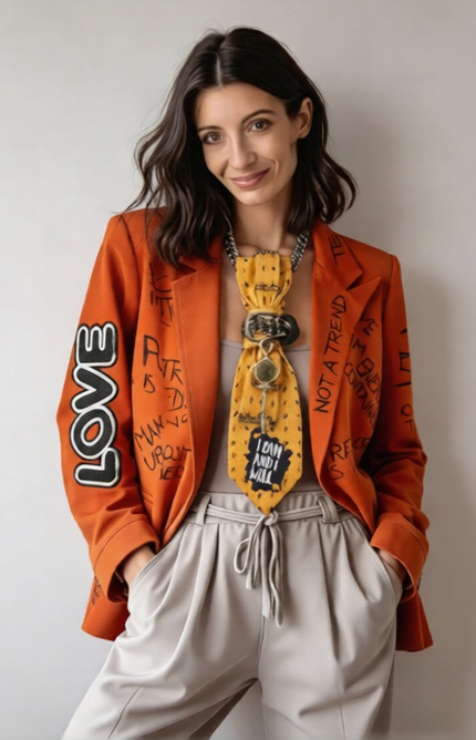 Her signature collection, Jewelry Ties, features a modular 4-in-1 design: four distinct elements combined in one piece, allowing for limitless styling possibilities. Claudia designs these pieces to empower women, giving them a subtle yet tangible way to express presence, confidence, and individuality through their accessories.