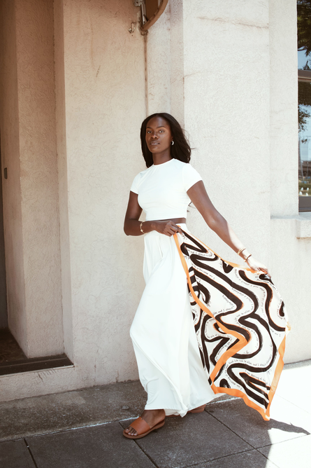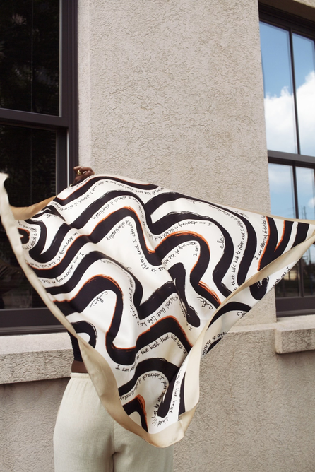 The Law of Attraction Scarf is the embodiment of our brand’s ethos. Crafted from the finest 100% Grade A mulberry silk-satin, this 35 x 35 inch scarf is more than just an accessory. Each scarf features the powerful affirmation, “I am deserving of the best that life has to offer, and I attract it effortlessly,” woven into the fabric in a stunning brushstroke design. Available in two healing-inspired colorways: ‘ginger’ and ‘turmeric’, the scarf is designed to cater to both inner and outer beauty.