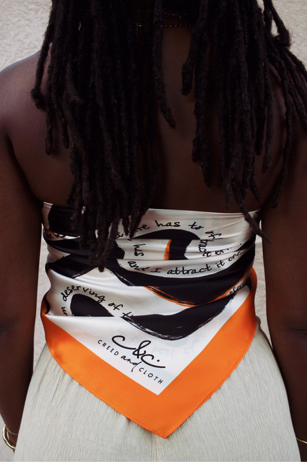 Drawing from her personal journey with affirmations and self-love, Arielle created Creed & Cloth to offer products that inspire and empower. The Law of Attraction scarf, the brand's flagship product, reflects her unique approach to style and self-care, blending luxurious materials with affirmations designed to uplift and transform.