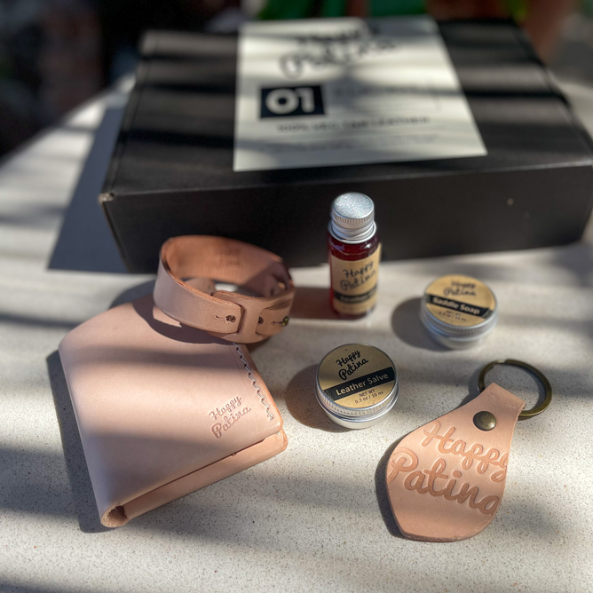 The brand operates under a slow, intentional model: small batches, local production, and minimal packaging. Every piece is crafted with longevity in mind and comes with a care kit to extend its lifespan. Through this approach, Happy Patina invites people to reconnect with their belongings—and to find meaning in how they age alongside them.