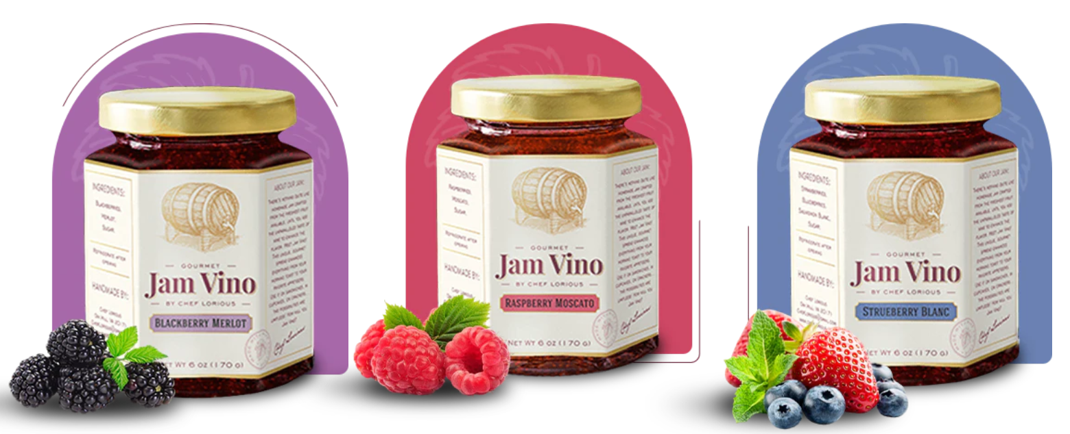 Jam Vino started as a creative twist on a family spread for âa gourmetâ grilled cheese and evolved into something spectacular during a cooking demo at Williams-Sonoma. As Chef Lorious layered this one-of-a-kind homemade wine-infused jam into sandwiches during the demo, the crowdâs curiosity turned into delight. They kept asking, "Whatâs in this?" and Chef Lorious realized she had more than just a family favorite â she had a hit, Jam Vino! Five years later, Jam Vino continues to be a hit and in September 2024.
