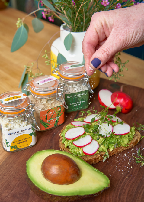 Keep It Savory Salt Co was founded in 2013 by our salt maven and founder Johanna Thompson. A science and history teacher with a love of being creative in the kitchen, she’s always had a penchant for being salty in the best ways. After a magazine recipe inspired holiday gifts for friends and family, it became clear that a production plan would be needed a couple months later when those same friends indicated the were having a culinary emergency: "We're out of your salt!" Over the next couple years, she'd grow to develop new flavors on her own such as Lemon Thyme, Rosemary Sage, and Thai Ginger Lemongrass. Today the brand boasts eleven flavors, a holiday brine kit, and she's working on test batches for another, hoping to be released next year.