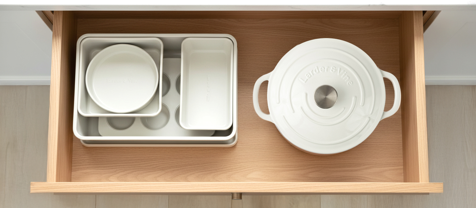 Larder & Vine is an affordable kitchenware brand dedicated to enhancing everyday cooking, dining and home entertaining. With a focus on quality, design, and accessibility, the brand offers timeless, heirloom-quality pieces that bring style and functionality to every kitchen. From cookware to bakeware to tableware, each item is thoughtfully crafted to inspire gathering, sharing and creating meaningful connections around food.