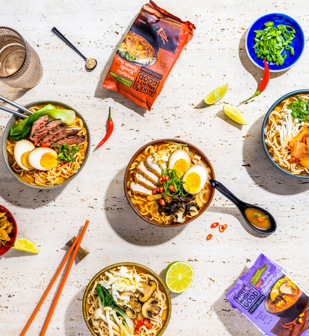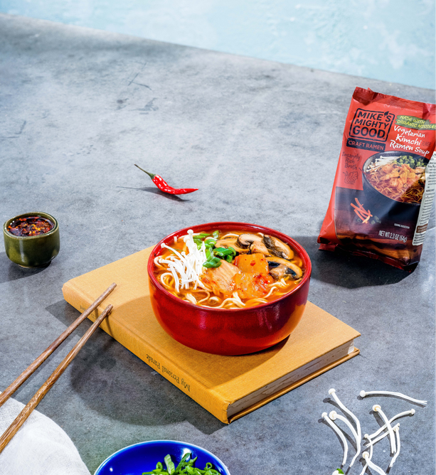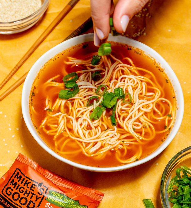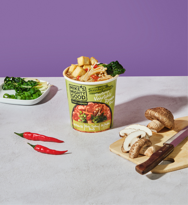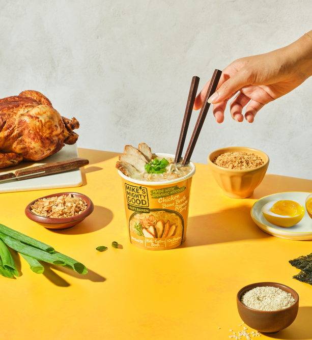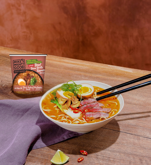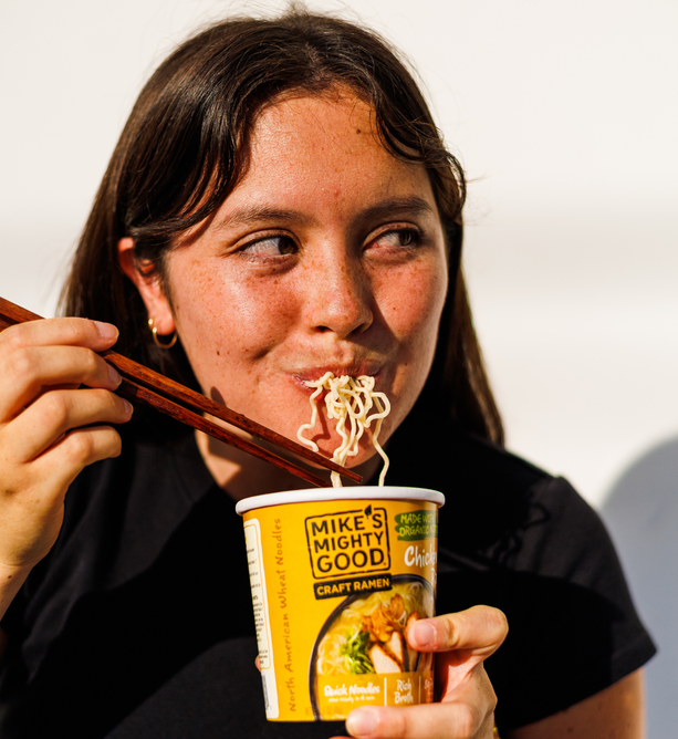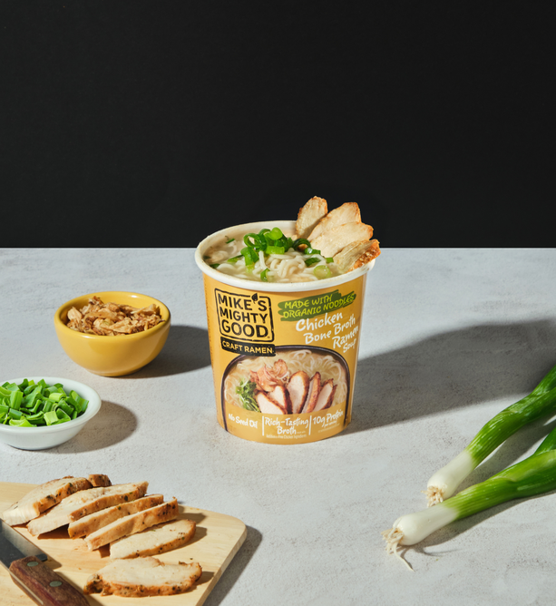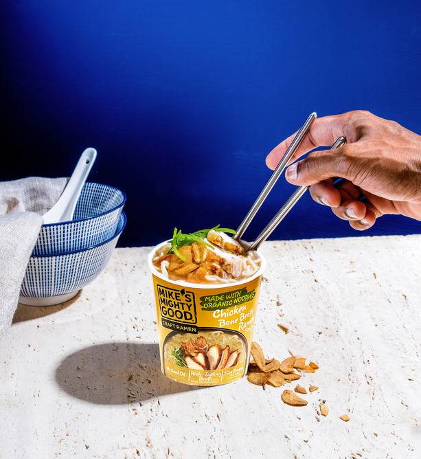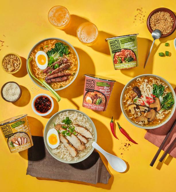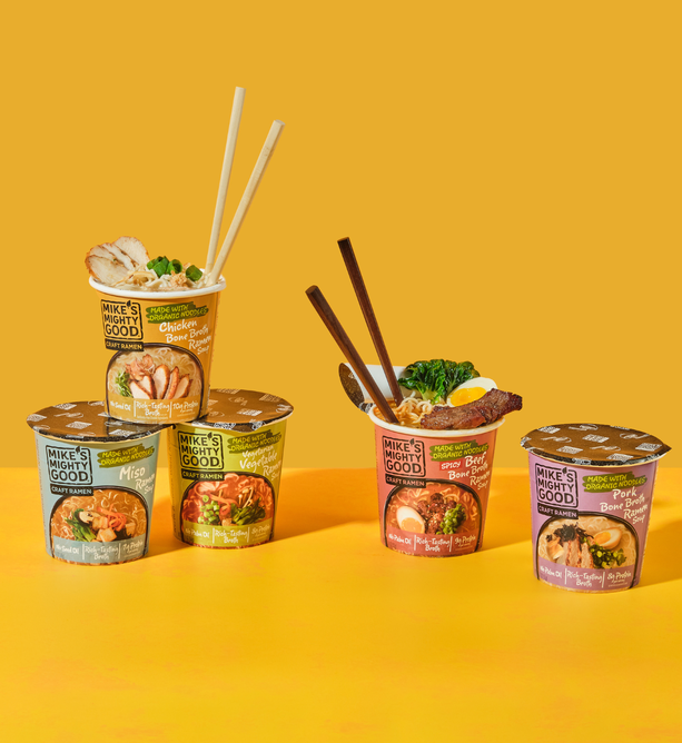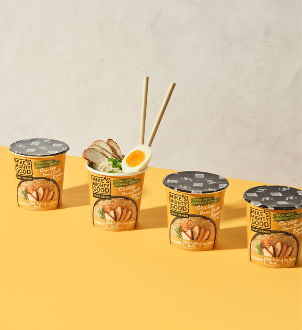 Break up with Boring Food with Mike's Mighty Good. Mike’s Mighty Good is a craft ramen brand redefining what instant noodles can be. Known for its organic steamed (not fried) noodles made in-house from scratch along with its rich broths, and simple, recognizable ingredients, the brand has carved out a space in the better-for-you comfort food category. With options ranging from vegan miso to rich & meaty bone broth ramen cups, Mike’s Mighty Good delivers restaurant-quality taste without artificial flavors or preservatives, palm oil, seed oils, or unnecessary additives. The company also prioritizes sustainability, using renewable energy in its facility and packaging made from certified paper sources.