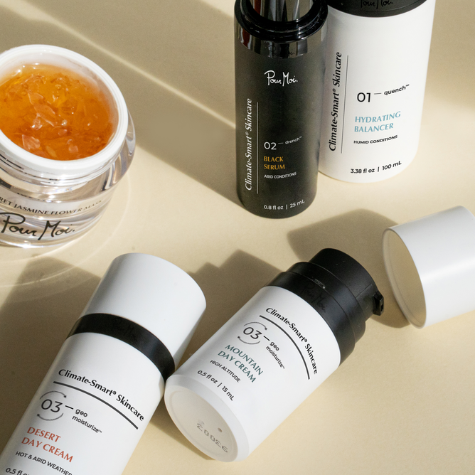 Made in France and tested in real-world climates, Pour Moi’s adaptive system responds to daily changes in temperature, humidity, air quality, and elevation—helping skin look and feel its best, every day, everywhere.