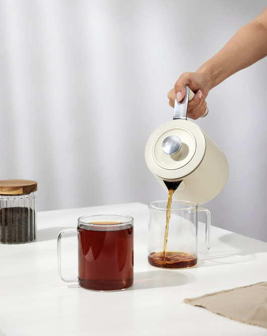 This electric kettle is top-notch—equal parts sleek and speedy and able to heat a full liter of water in under five minutes. We love its simple look and low-profile electric base equipped with touch buttons, which allows you to easily set your temperature (in single-degree increments) and then will blink red around the base to indicate it’s heating and then turn solid when your desired temperature is reached. Other favorite features include a built-in timer (to ensure your pour over or French press brews for the proper length), discreet volume markings, a rubberized lid that won’t clang around as it boils, and a plastic-free interior—which is paramount when it comes to preserving the flavor of the coffee. This kettle also might have one of the best handles around: the pebbled rubber is heat resistant and offers a sturdy grip for perfect pouring, even while wet.