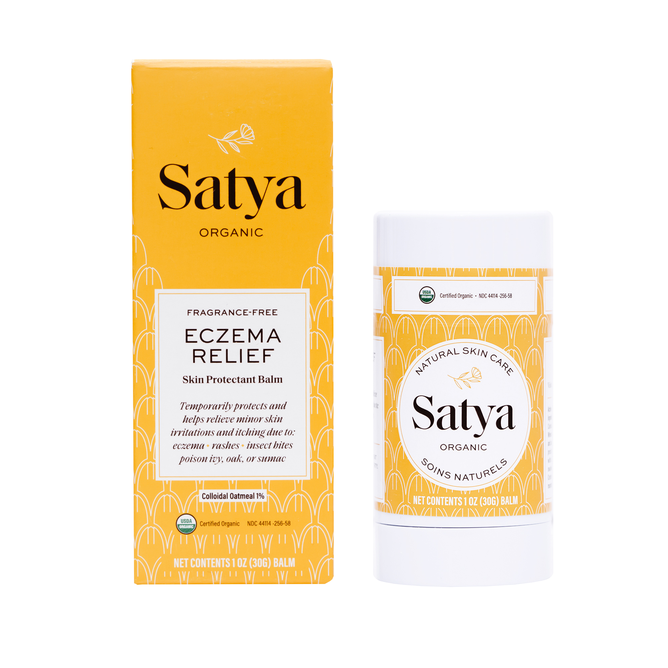 Although originally formulated for eczema, Satya's signature skin relief also works wonders on all types of everyday skin stress. Whether you're dealing with an intense eczema flare-up, or just suffering from chapped lips, dry cuticles, thigh chafing, or an extremely itchy bug bite, Satya has got you covered.