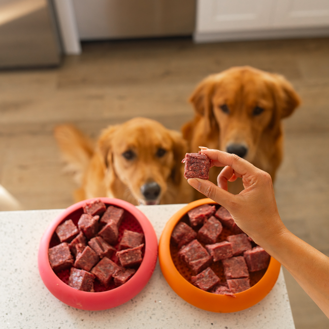 We believe there is no one-size-fits-all approach to feeding dogs. That’s why we support flexible feeding, whether you choose to feed fully raw or partially raw alongside another food. Our meal plans are tailored to each dog based on age, weight, and activity level, so you can feed raw in a way that works for your routine and your dog’s needs.