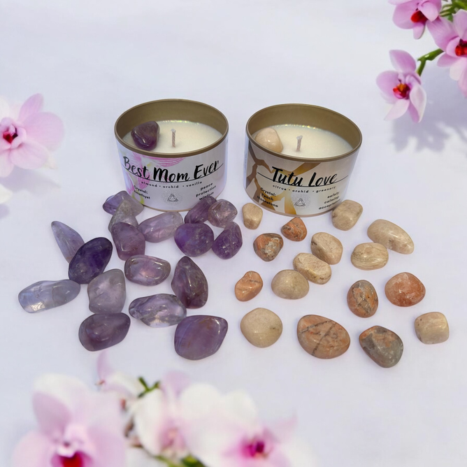 I take immense care in hand-pouring each candle and sourcing the most stunning crystals to infuse into our collections. Giving back is at the heart of what we do, and we are proud to donate a portion of our sales to local charities every month, supporting our community and those in need as proud members of 1% for the Planet.